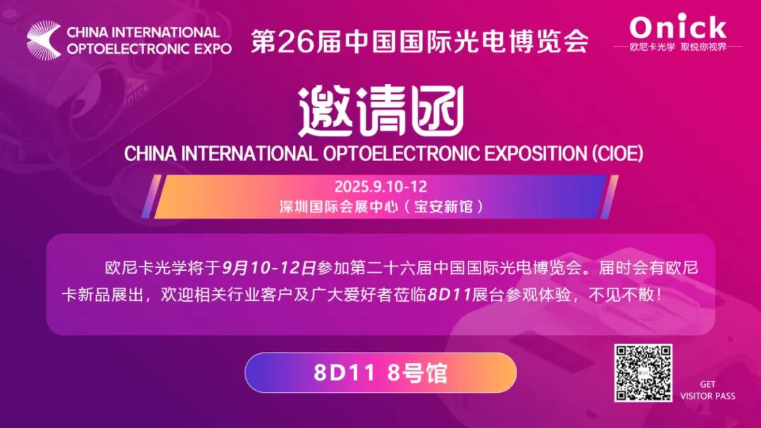 9月10-12日,覆盖光电全产业链的行业盛会——CIOE中国光博会即将拉开帷幕,在深圳国际会展中心举办。欧尼卡光学作为深耕光学领域的技术引领者,我们将携前沿的光学技术解决方案重磅亮相本次盛会。